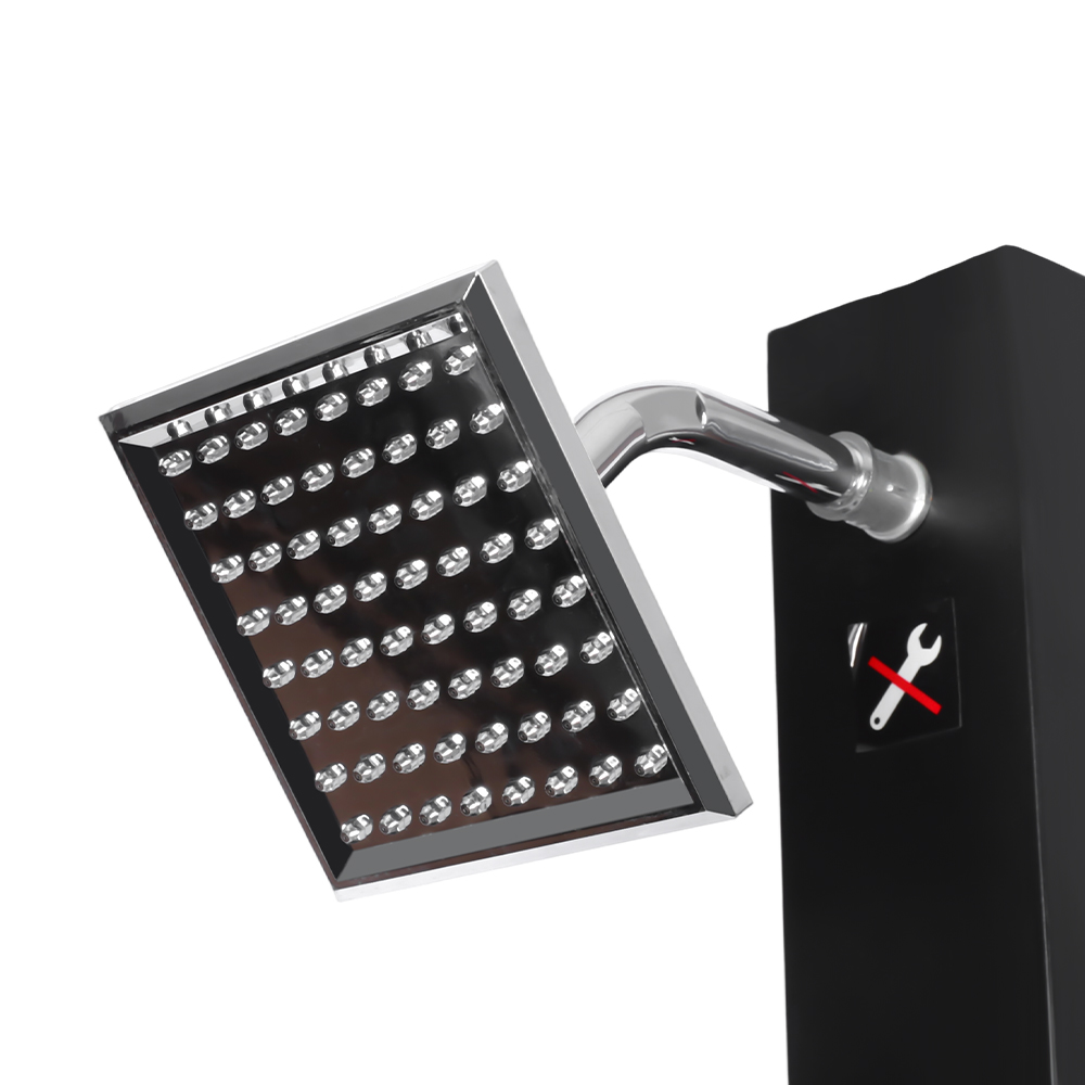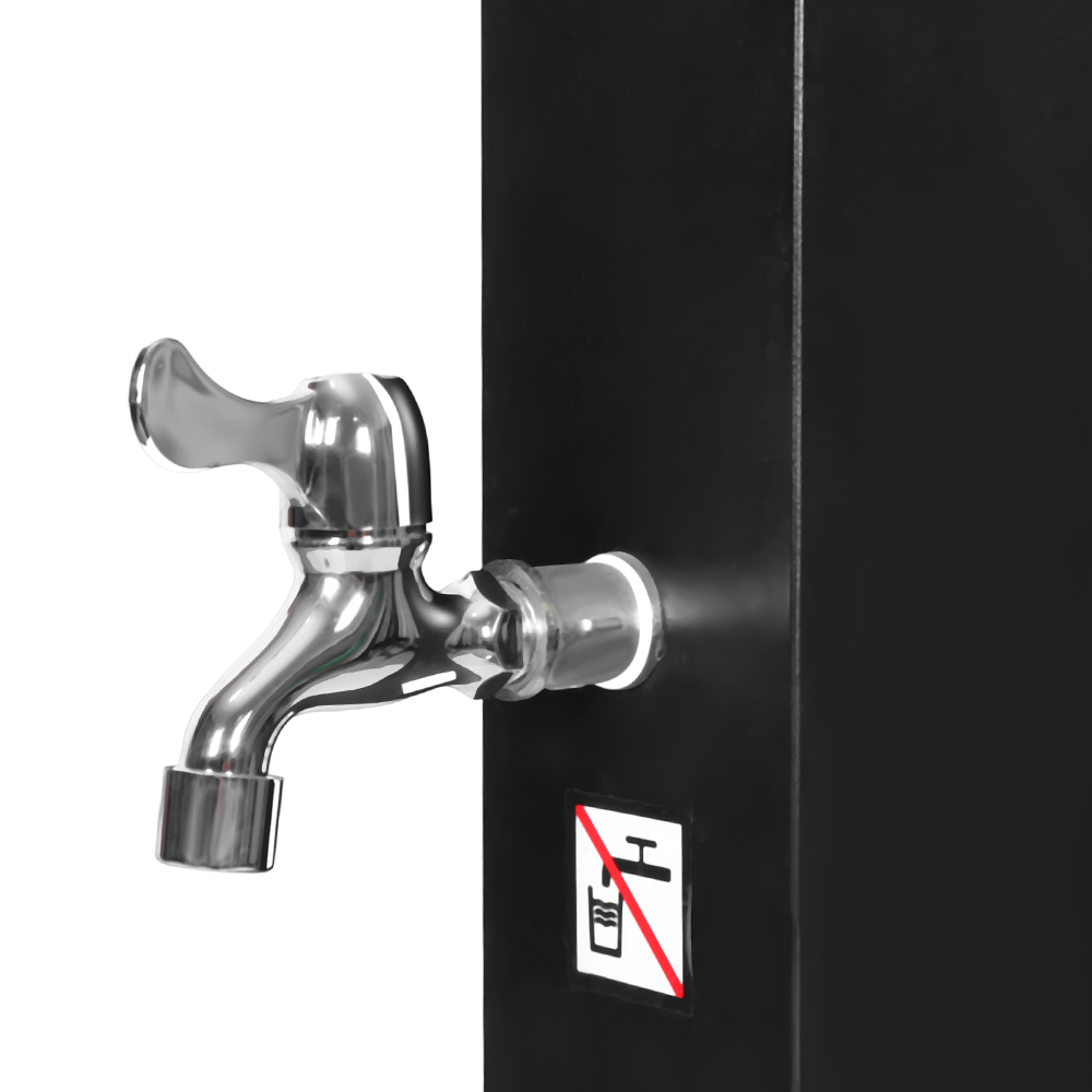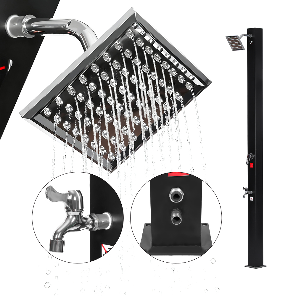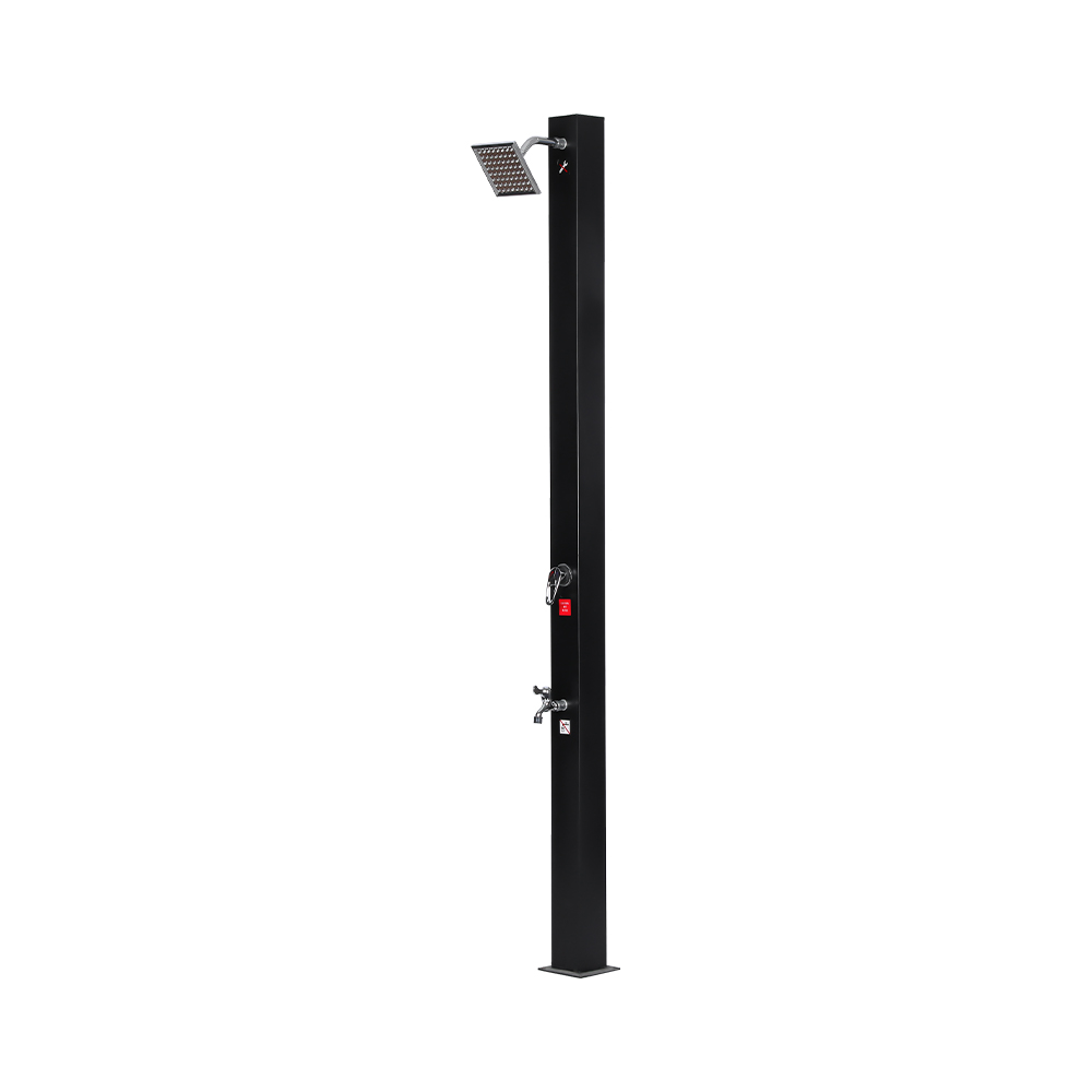 Ez az LY18L08-SS állítható, integrált UV-álló napelemes zuhany átgondolt kialakítása a kényelem és a praktikusság jegyében. Beépített gömbcsuklóval felszerelt, nagyméretű esőzuhanyfeje akár 180°-ban is elforgatható, így a dőlésszög állítása az élvezetes és frissítő zuhanyélmény érdekében. Az UV-álló műanyagból készült egység tartós és gyorsan szétszerelhető, így használaton kívül könnyen szállítható vagy tárolható. A rozsdamentes acélból, ABS-ből, rézből és más megbízható anyagokból készült robusztus alap biztonságos és stabil rögzítést biztosít különféle kültéri felületeken is. A zuhany használata egyszerű – csak töltse fel a zuhanycsövet egy szabványos kerti tömlővel, hagyja, hogy a nap természetes módon melegítse fel a vizet, majd a beépített csap segítségével állítsa be a kívánt hőmérsékletet, így kényelmes és kellemes kültéri zuhanyozási élményt nyújt.