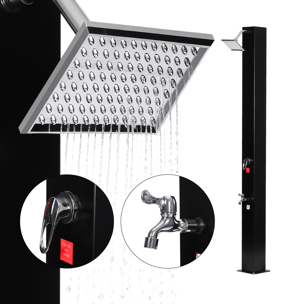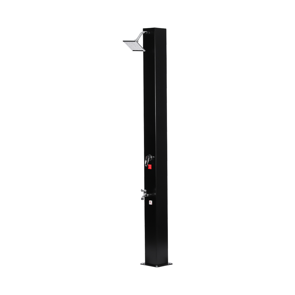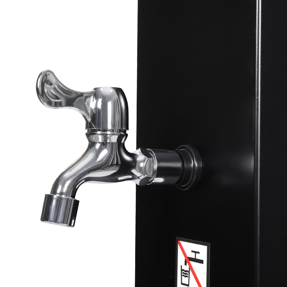 Ezt az LY35L04-SS nagy kapacitású kültéri napelemes zuhanyzót úgy tervezték, hogy kényelmes és kényelmes kültéri fürdőzési élményt nyújtson azáltal, hogy kihasználja a napfény erejét a víz körülbelül 60°C-os melegítésére, így nincs szükség elektromos áramra. A zuhanycső feltöltése egyszerű – egyszerűen csatlakoztasson egy szabványos kerti tömlőt, és a zuhany készen áll a használatra. A nagyobb kényelem érdekében a beépített fémrács könnyen elérhető helyen tartja a zuhanyozáshoz szükséges eszközöket, például zselét vagy sampont, míg az alján átgondoltan elhelyezett lefolyónyílás gondoskodik a víz gyors és hatékony eltávolításáról, megakadályozva a víz felállását. A teljes egység összeszerelése az alkatrészek biztonságos összecsavarozásával történik, így biztosítva a stabil szerkezetet, a biztonságos kültéri működéshez pedig megfelelő talajrögzítés szükséges. A telepítés és a használat egyszerűbbé tétele érdekében átfogó, többnyelvű utasításokat tartalmaz, amelyek a különböző régiók felhasználói számára elérhetővé teszik.