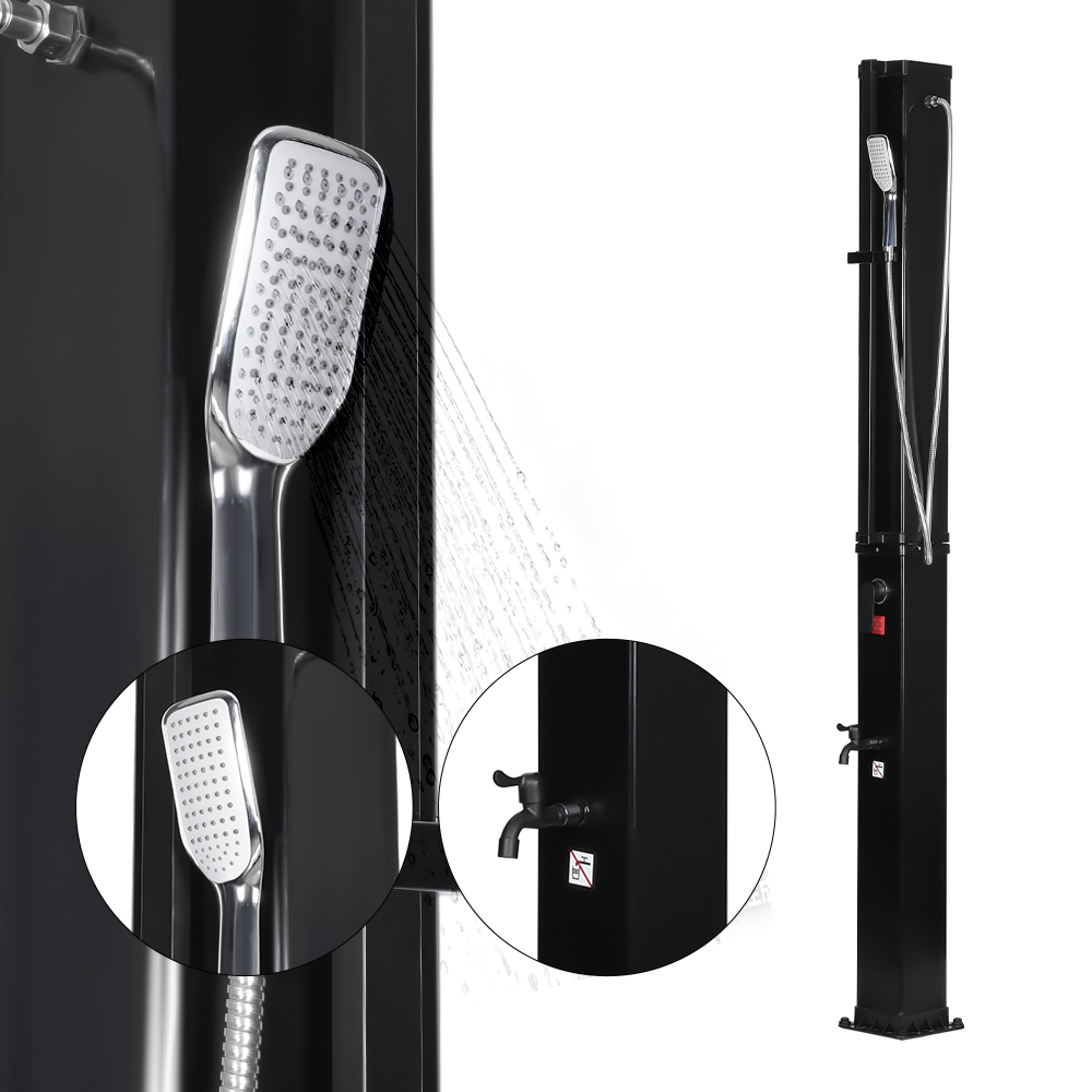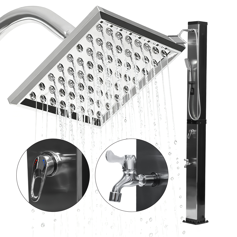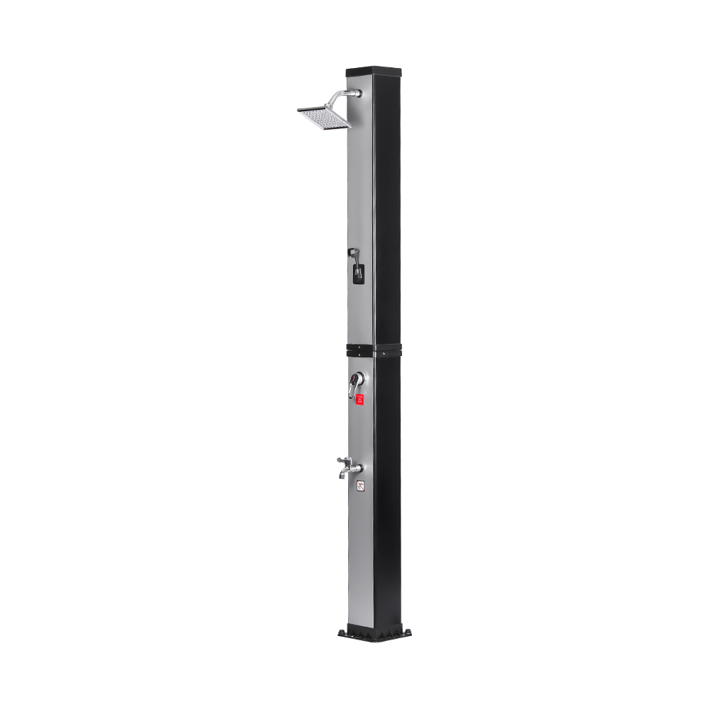 Ez a LY35L07 multifunkcionális, nagy kapacitású napelemes zuhany csak a napfényt használja fel a víz felmelegítésére 60°C-ig, így energiatakarékos és környezetbarát módon élvezheti a szabadtéri fürdőzést. A feltöltése egyszerű – csak csatlakoztasson egy szabványos kerti tömlőt a bemenethez, és a zuhanycső gyorsan használatra kész. A beépített fémpolc kényelmes helyet kínál a tusfürdő és más alapvető dolgok tárolására, míg az alján lévő vízelvezető nyílások biztosítják a víz hatékony elfolyását, szárazon és rendben tartva a területet. A sokoldalúságot szem előtt tartva megtervezve ez a napelemes zuhany tökéletes különféle helyszínekre, legyen szó strandról, medence mellett, nyaralóban, szállodában vagy bungalóban. Rugalmas szerkezete lehetővé teszi a különböző környezetekhez való alkalmazkodást.