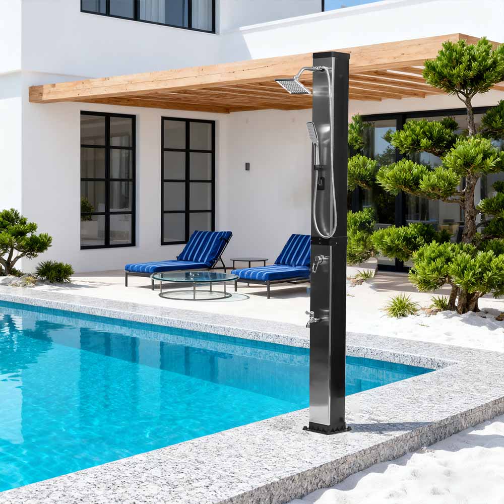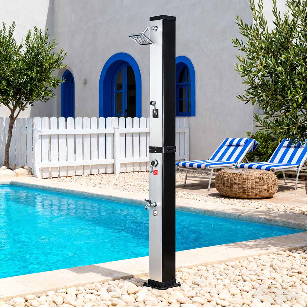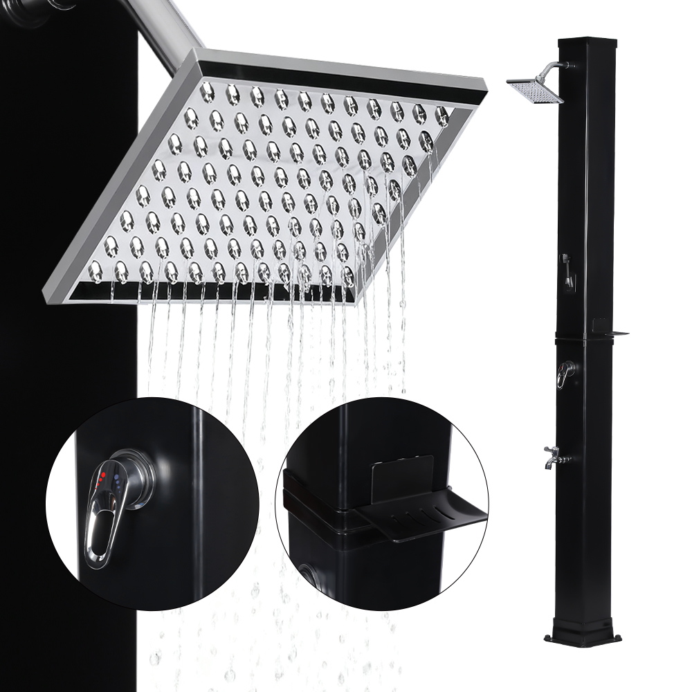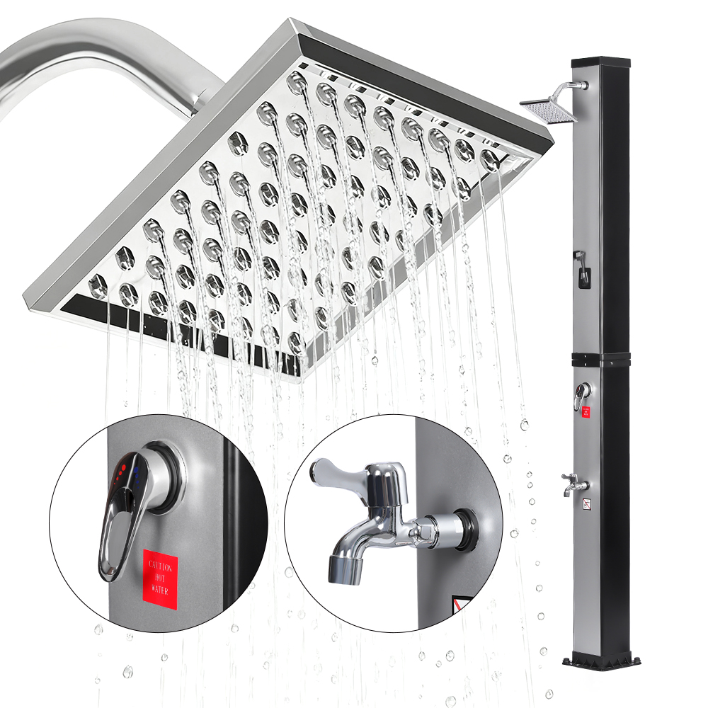 Ez a LY35L07 multifunkcionális, nagy kapacitású napelemes zuhany csak a napfényt használja fel a víz felmelegítésére 60°C-ig, így energiatakarékos és környezetbarát módon élvezheti a szabadtéri fürdőzést. A feltöltése egyszerű – csak csatlakoztasson egy szabványos kerti tömlőt a bemenethez, és a zuhanycső gyorsan használatra kész. A beépített fémpolc kényelmes helyet kínál a tusfürdő és más alapvető dolgok tárolására, míg az alján lévő vízelvezető nyílások biztosítják a víz hatékony elfolyását, szárazon és rendben tartva a területet. A sokoldalúságot szem előtt tartva megtervezve ez a napelemes zuhany tökéletes különféle helyszínekre, legyen szó strandról, medence mellett, nyaralóban, szállodában vagy bungalóban. Rugalmas szerkezete lehetővé teszi a különböző környezetekhez való alkalmazkodást.